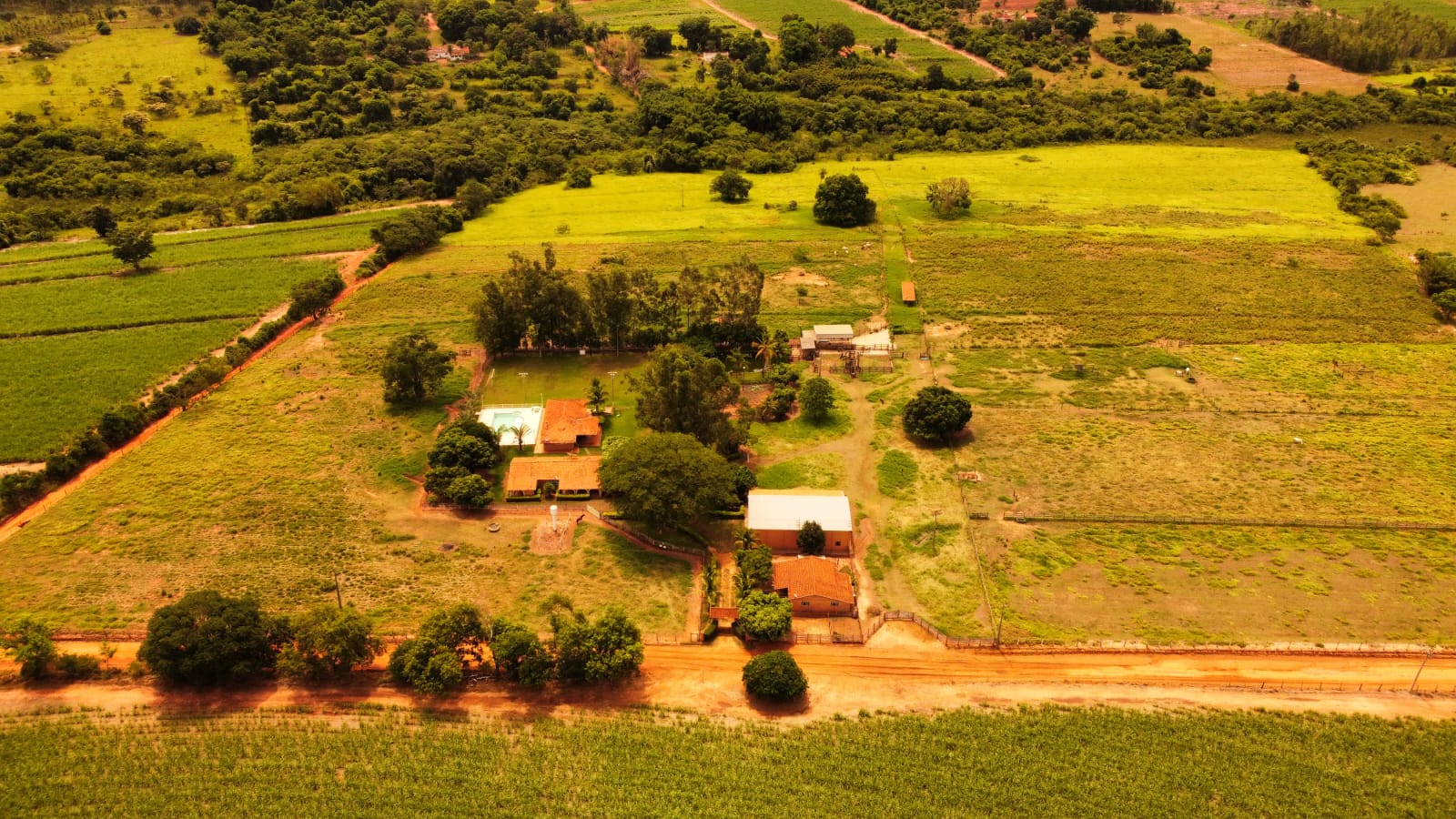 com 700m2, 5 baias para equinos em alvenaria, cobertura com madeira e telhas cerâmicas. Casa da sede em alvenaria, toda climatizada, com três quartos, sala, cozinha, área de serviços e varanda na frente, uma lateral e fundo, em laje e telhas cerâmicas. Área de lazer em alvenaria, forro de madeira e telha cerâmica, piscina 40.000 lts, campo de futebol society, tanque para pesca esportiva, curral cimentado e com cobertura metálica, dois poços artesianos. Área de pastagem toda dividida em piquetes.
